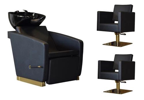 Zestaw Fryzjerski - 2 Fotele MODENA ZŁOTE + Myjnia VASTO ZŁOTA