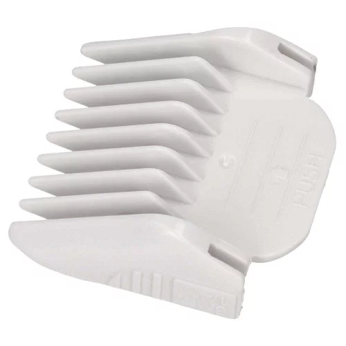 Nasadka wykonana została z wytrzymałego tworzywa, odpornego na uszkodzenia mechaniczne oraz działanie środków dezynfekujących. To kluczowe w pracy salonowej, gdzie liczy się niezawodność i higiena. Kształt nasadki pozwala na płynny poślizg po skórze głowy i włosach, zapewniając równe strzyżenie bez zacięć czy szarpania.